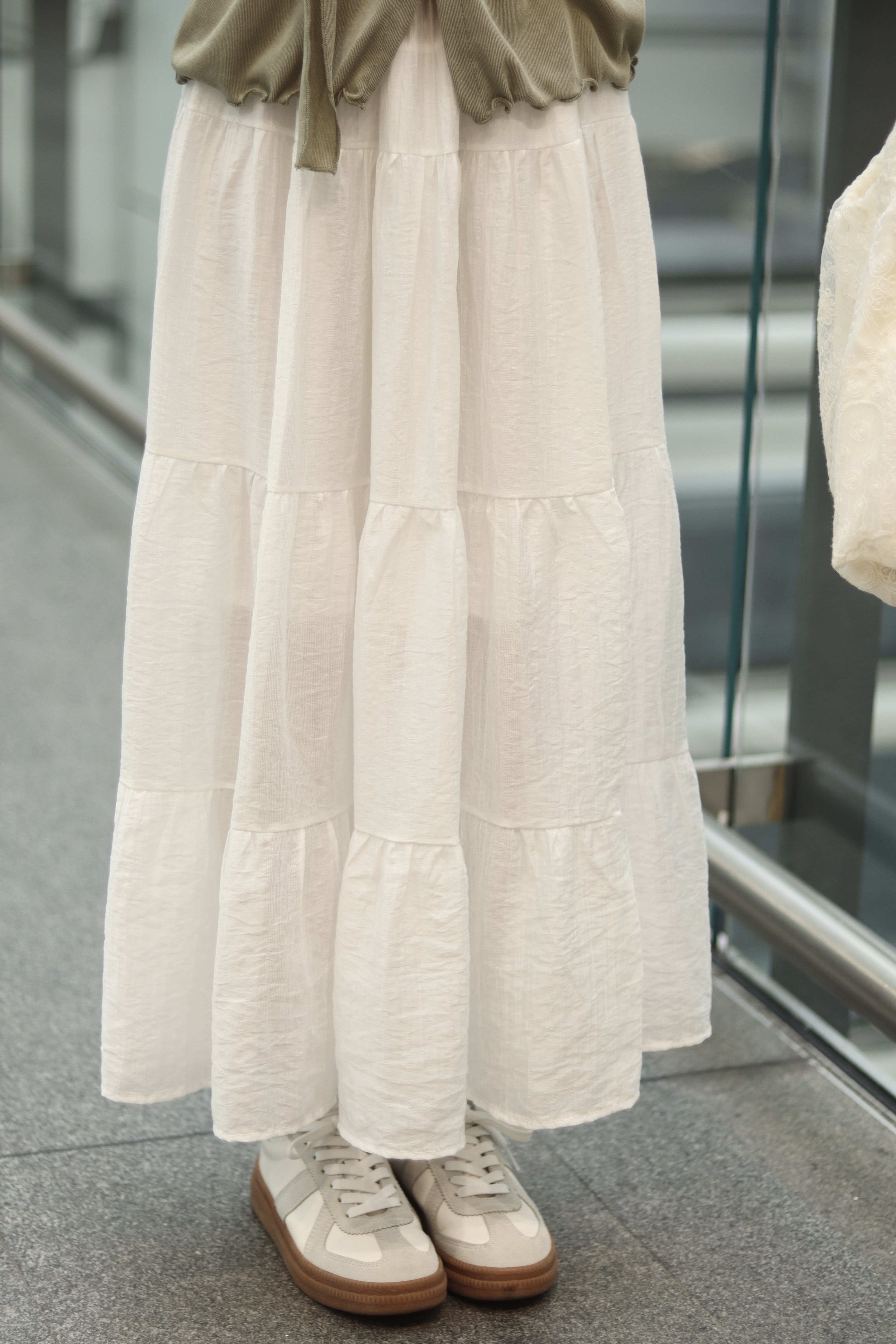 全橡筋腰棉麻飄逸蛋糕半截長裙