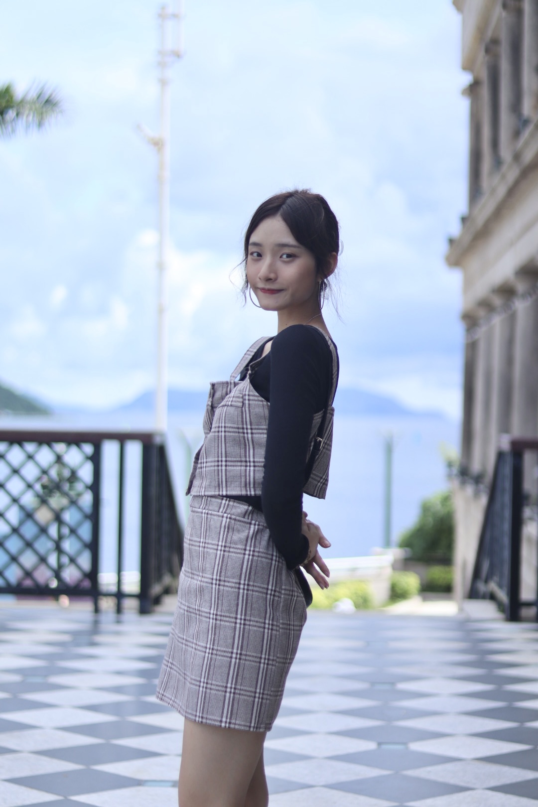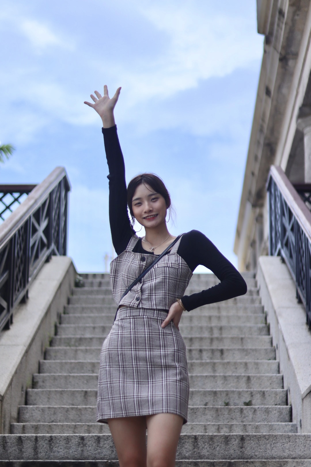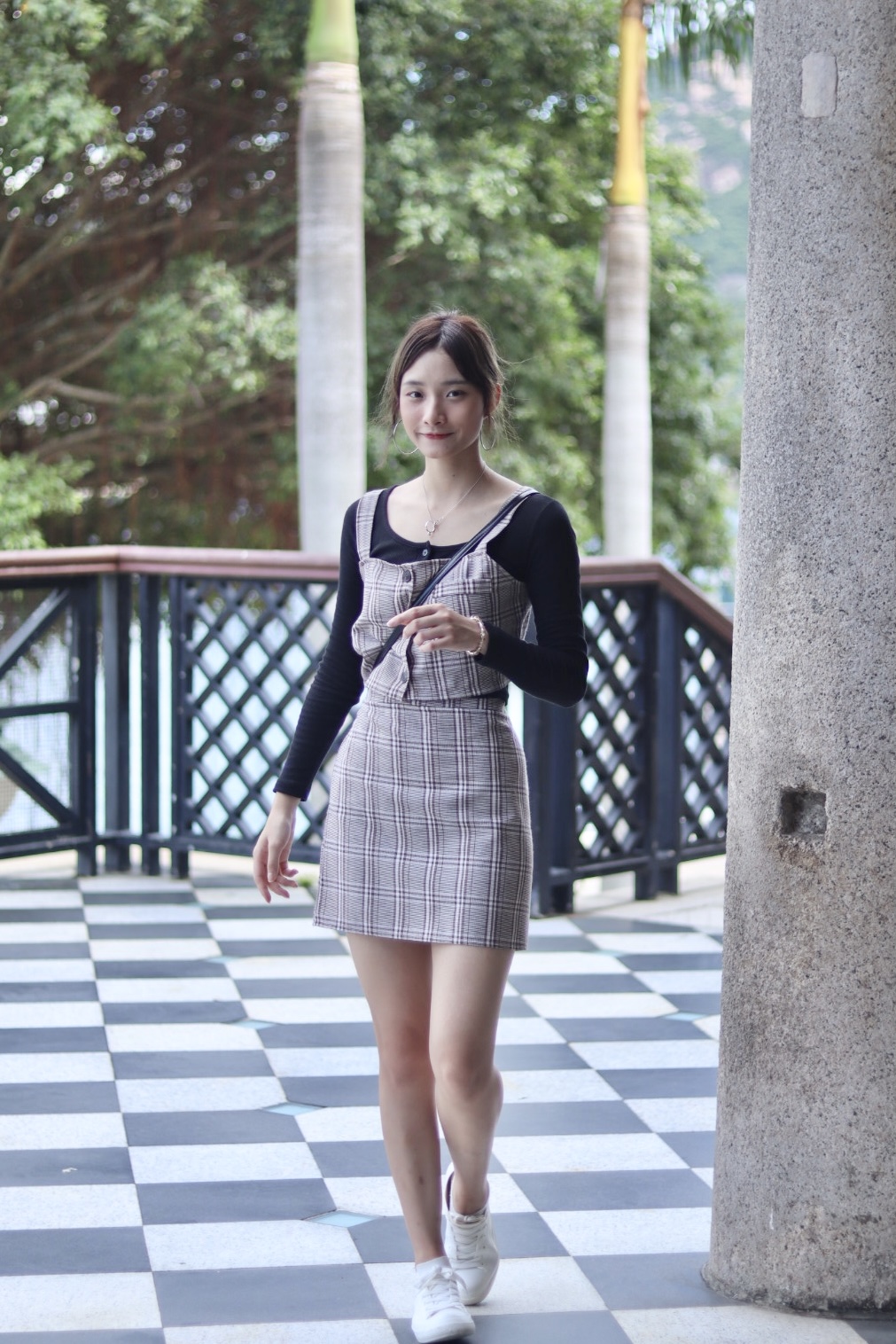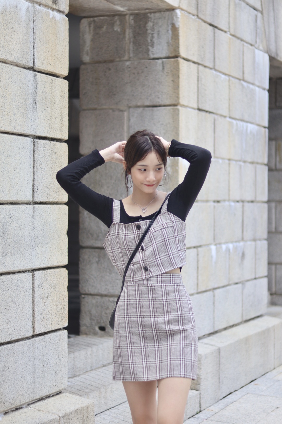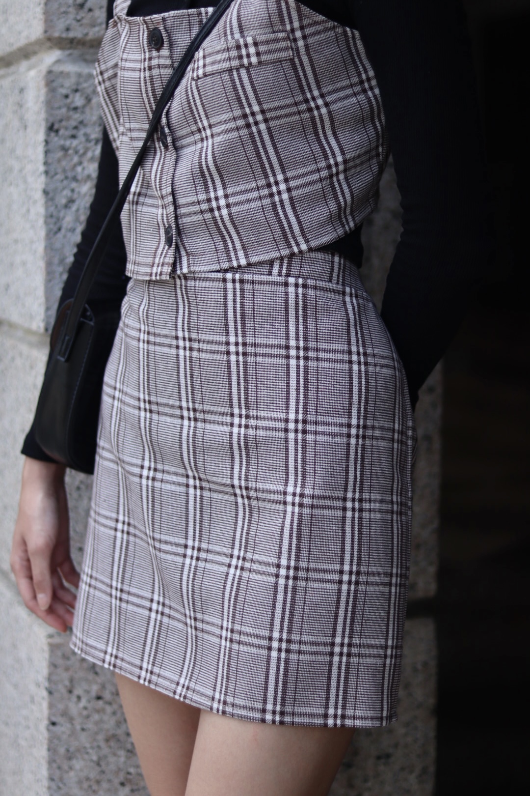經典格紋背心半截裙套裝
