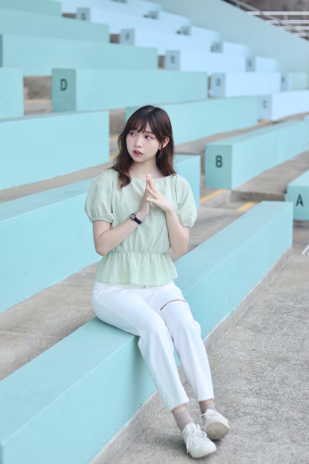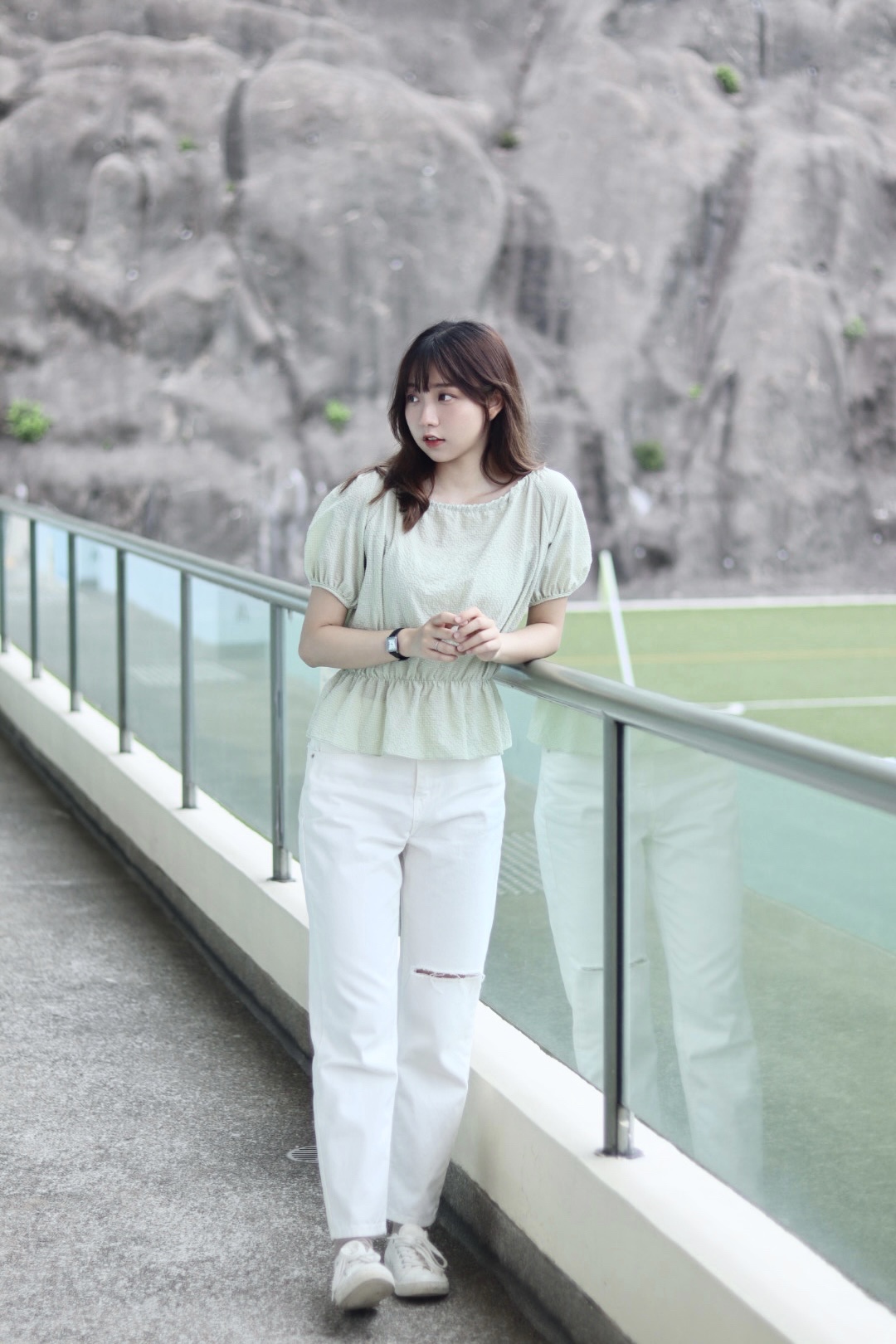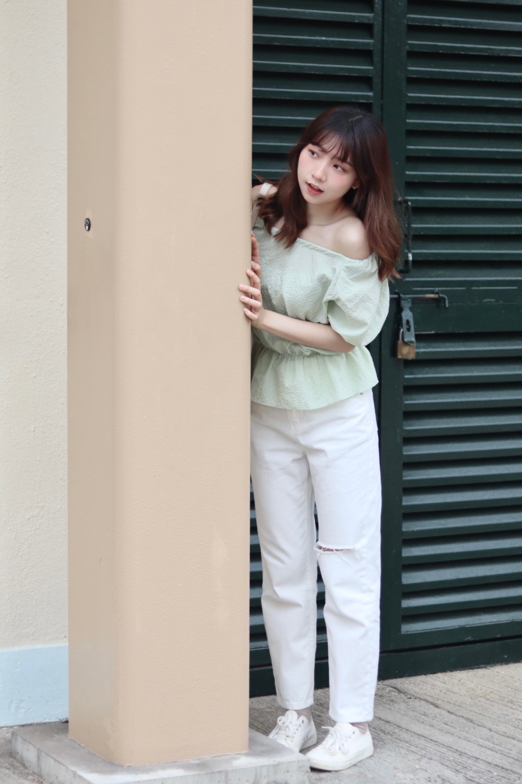 首頁 / 下身類 / 有分碼 百撘易襯白色破洞直腳褲