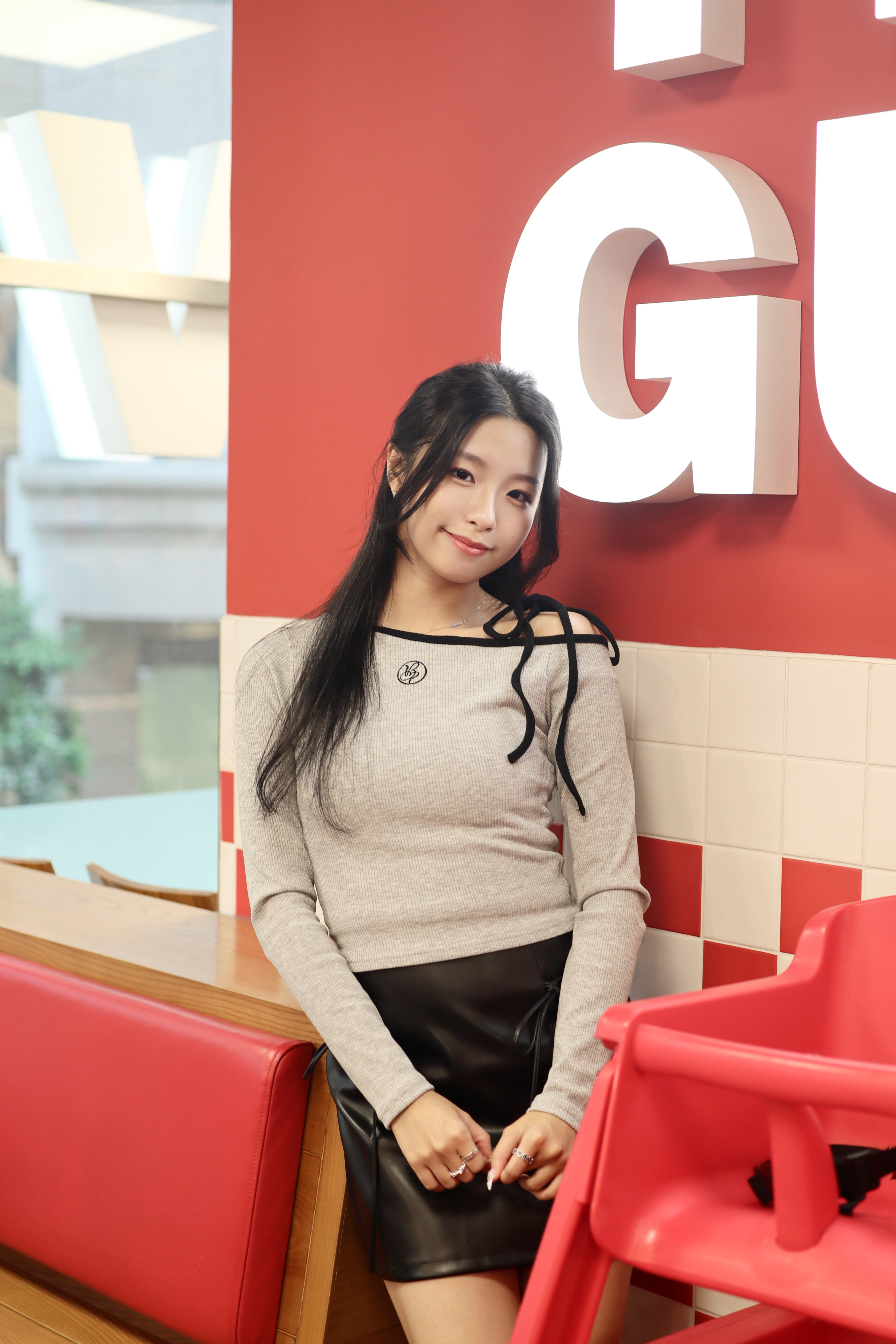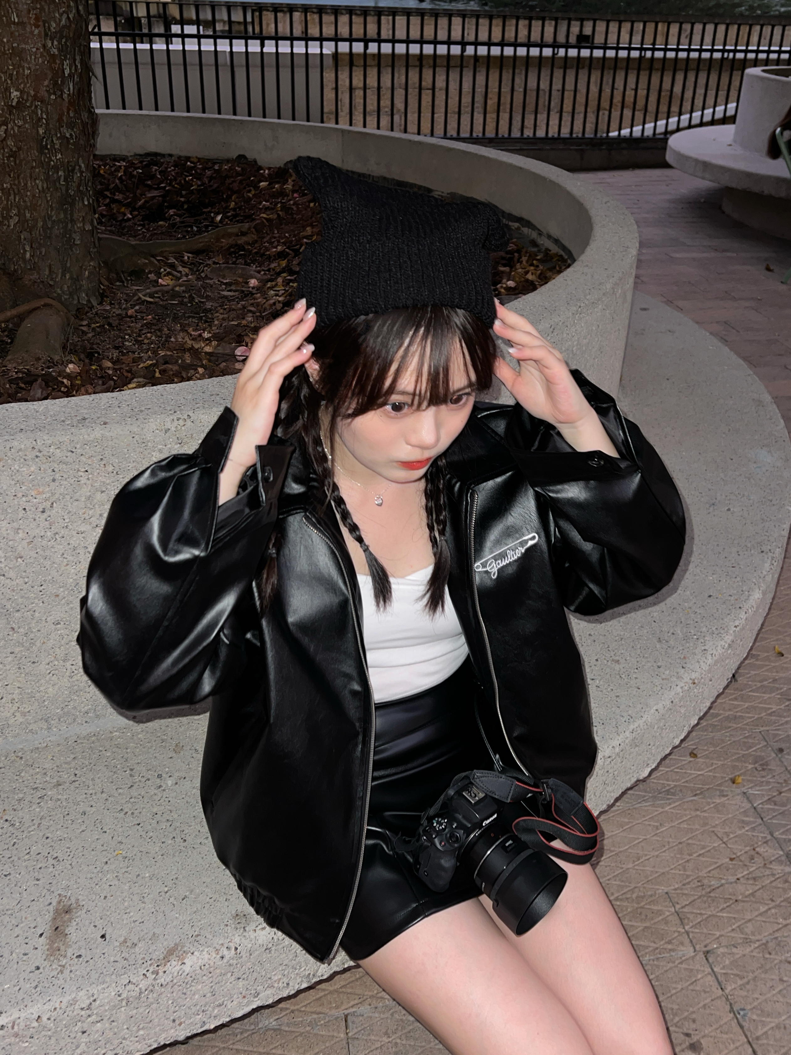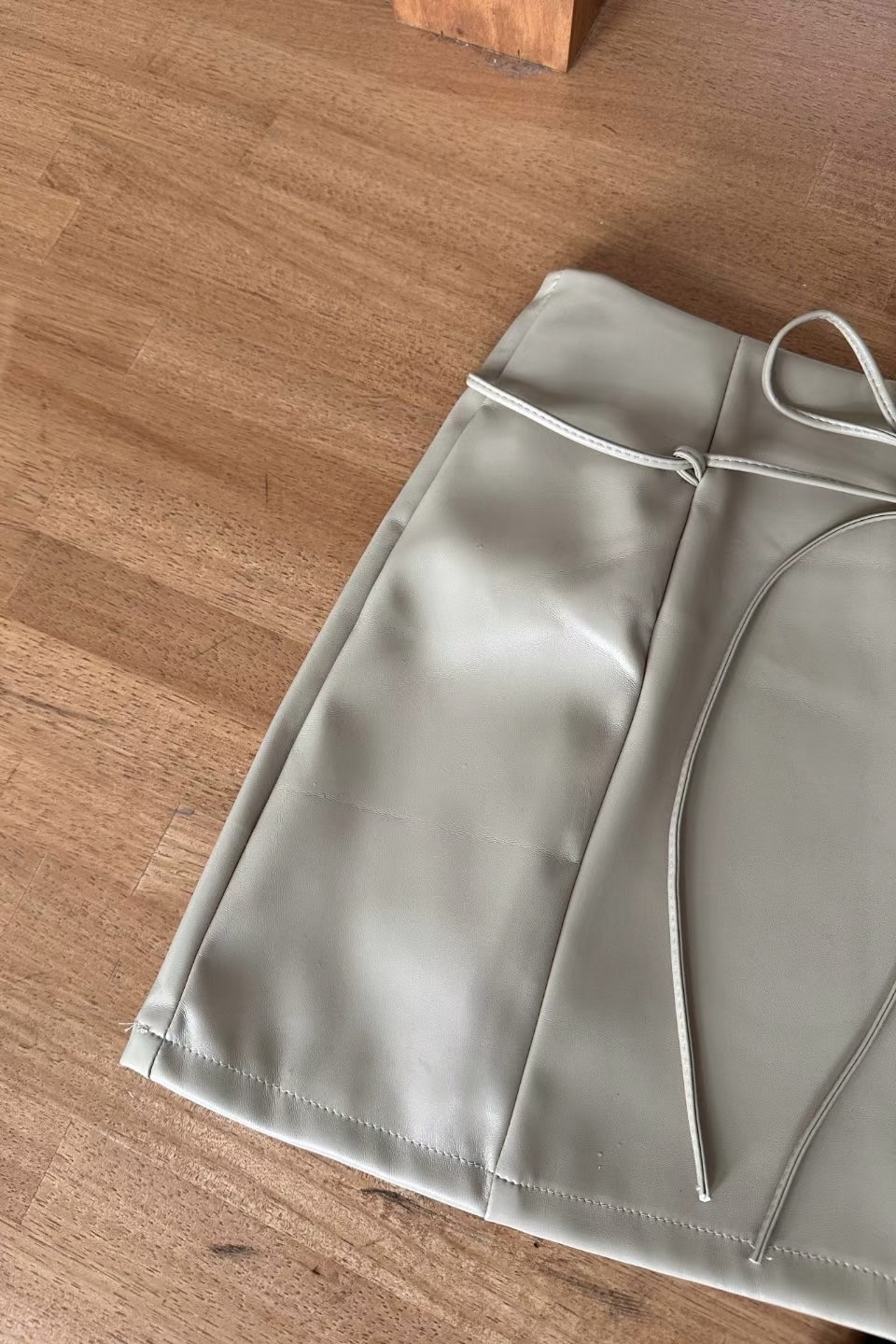 It is a leather skirt that can be created in a variety of moods. It is a set product that goes with a string, and it is a unique design that connects the string to a ring fixed at the waist and wears it as a belt. It goes well with all oversized products and bloody tops, so it is a skirt that can be stored for a long time that does not go out of style.
