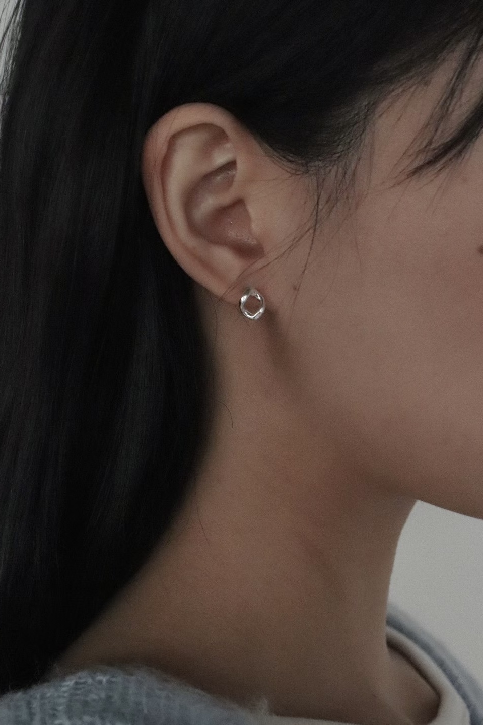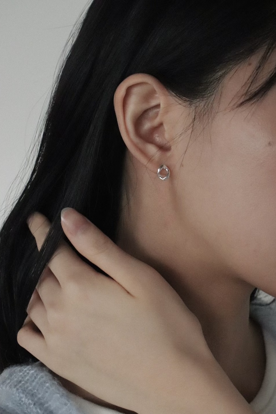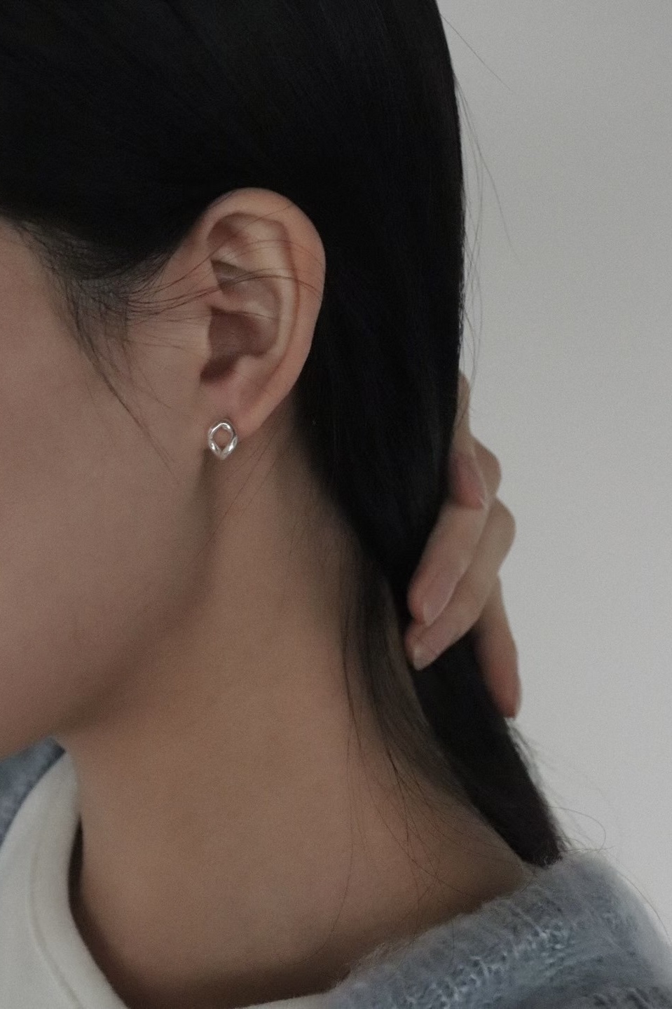(預訂) 流暢橢圓線條銀色耳環