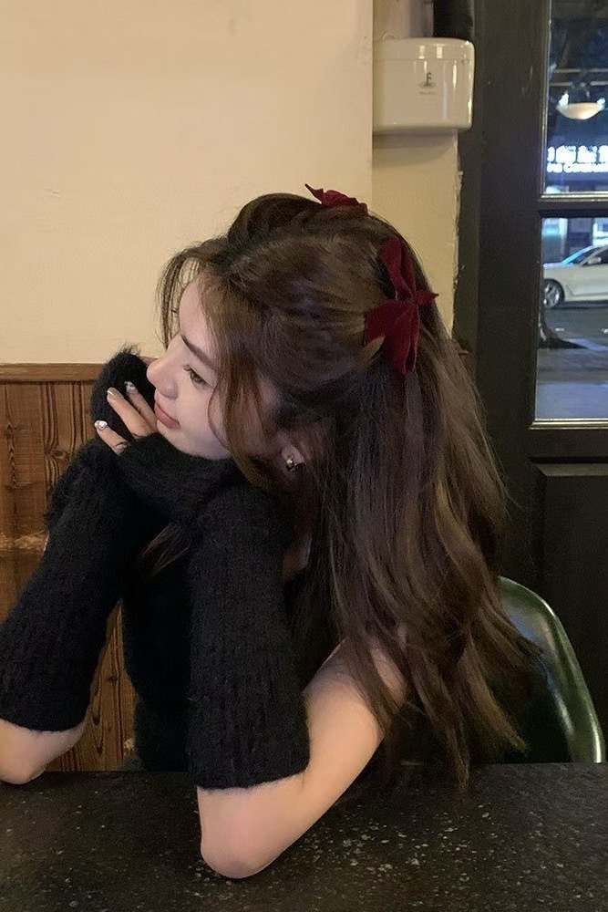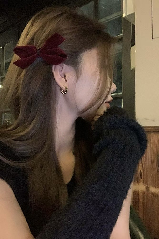 (預訂) 氣質絲絨蝴蝶結髮夾一對