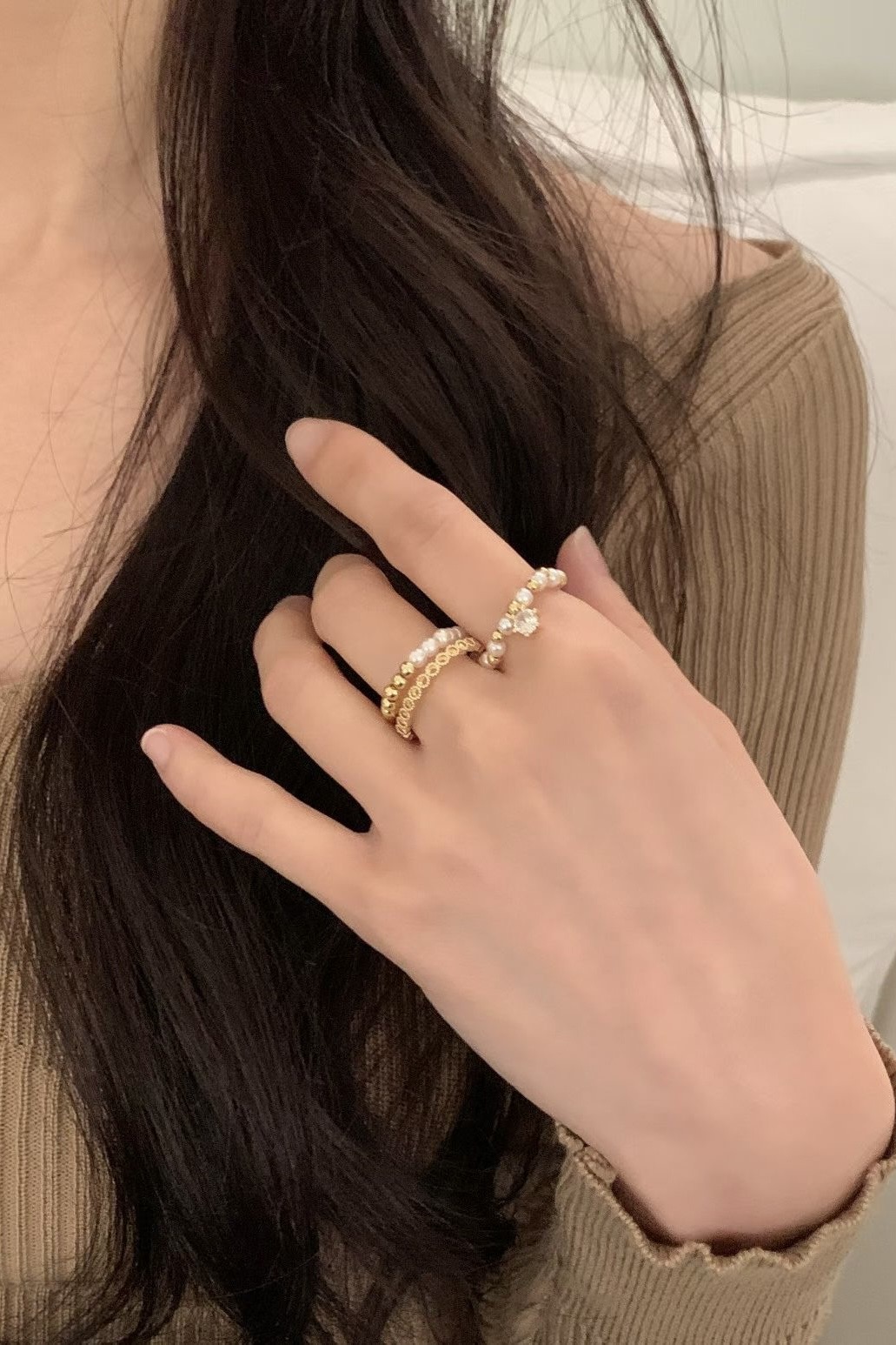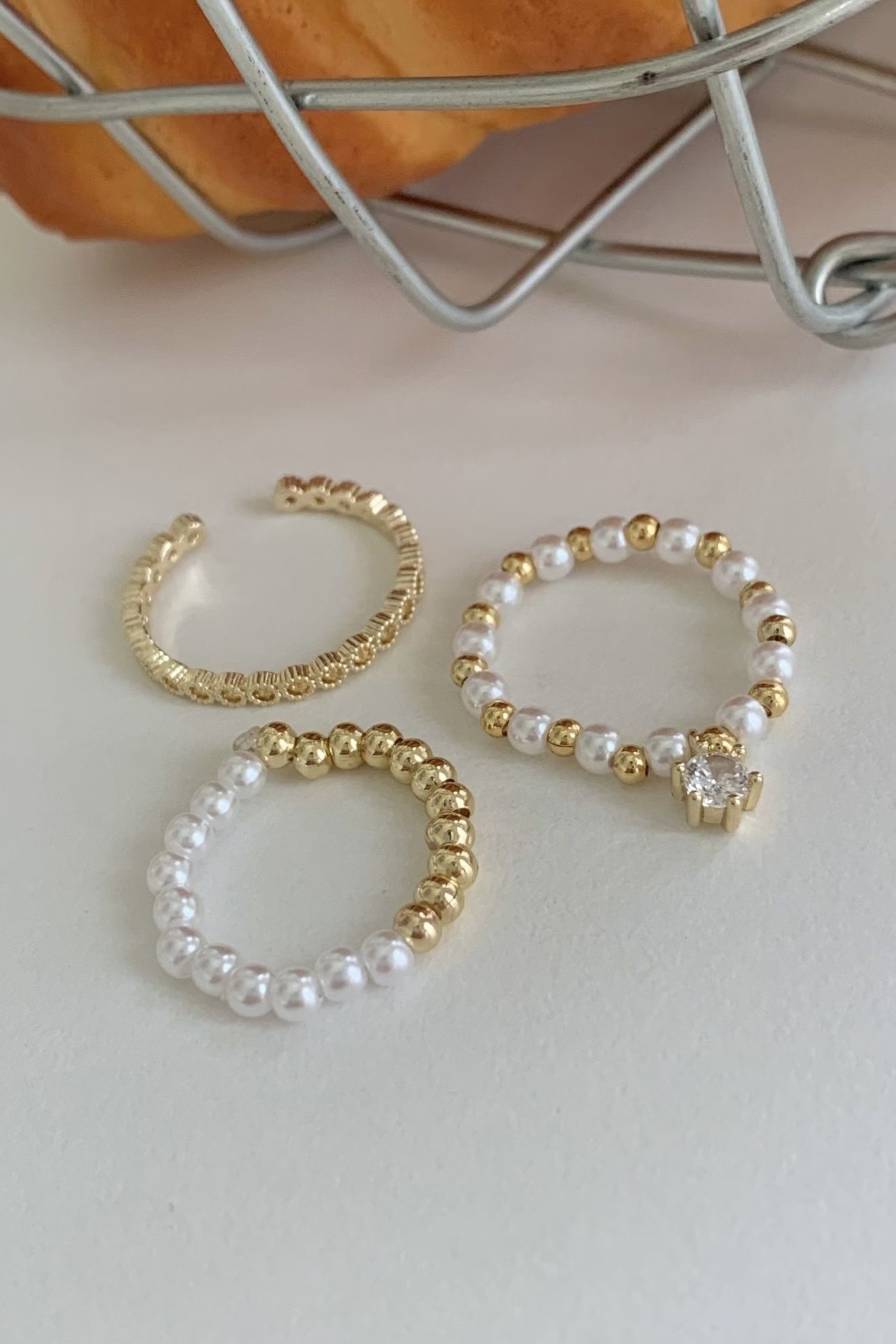 (預訂) 金色迷你珍珠戒指套裝