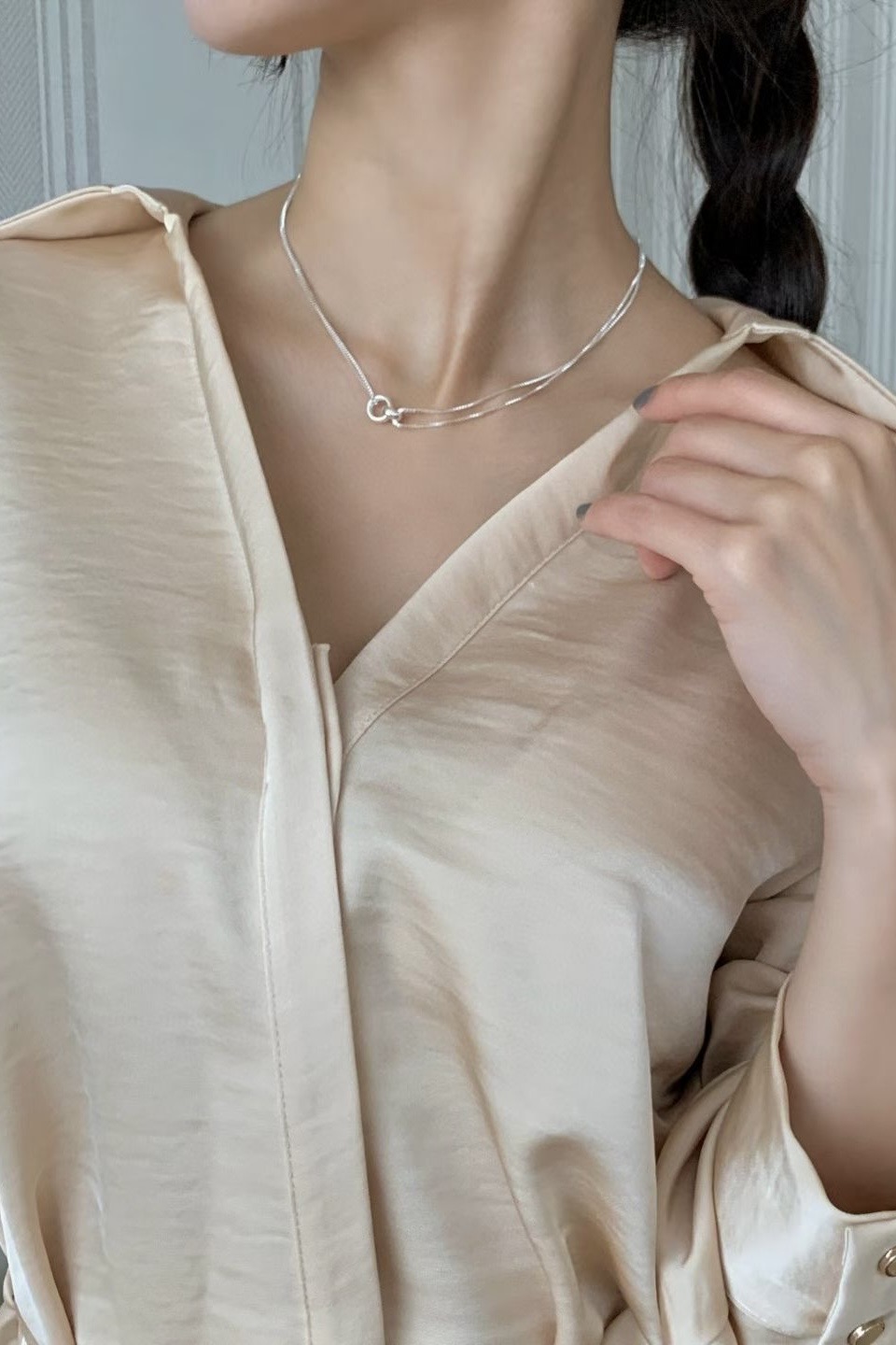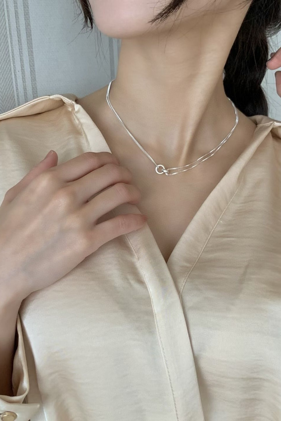 (預訂) 銀色環扣頸鏈