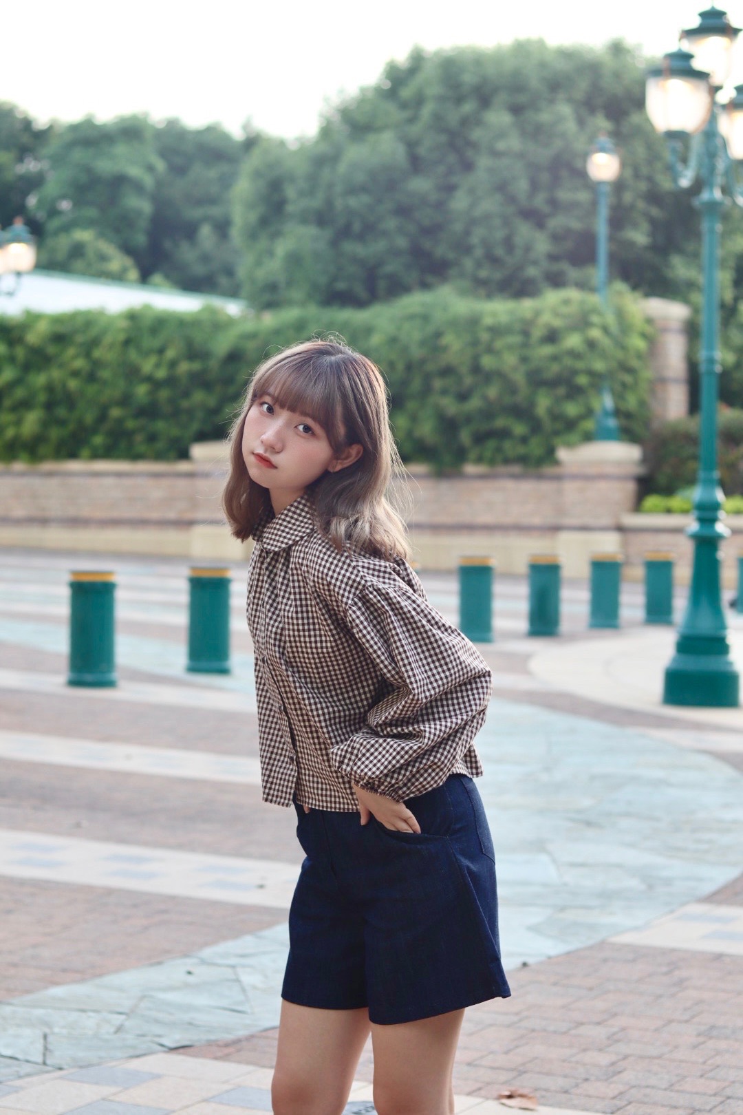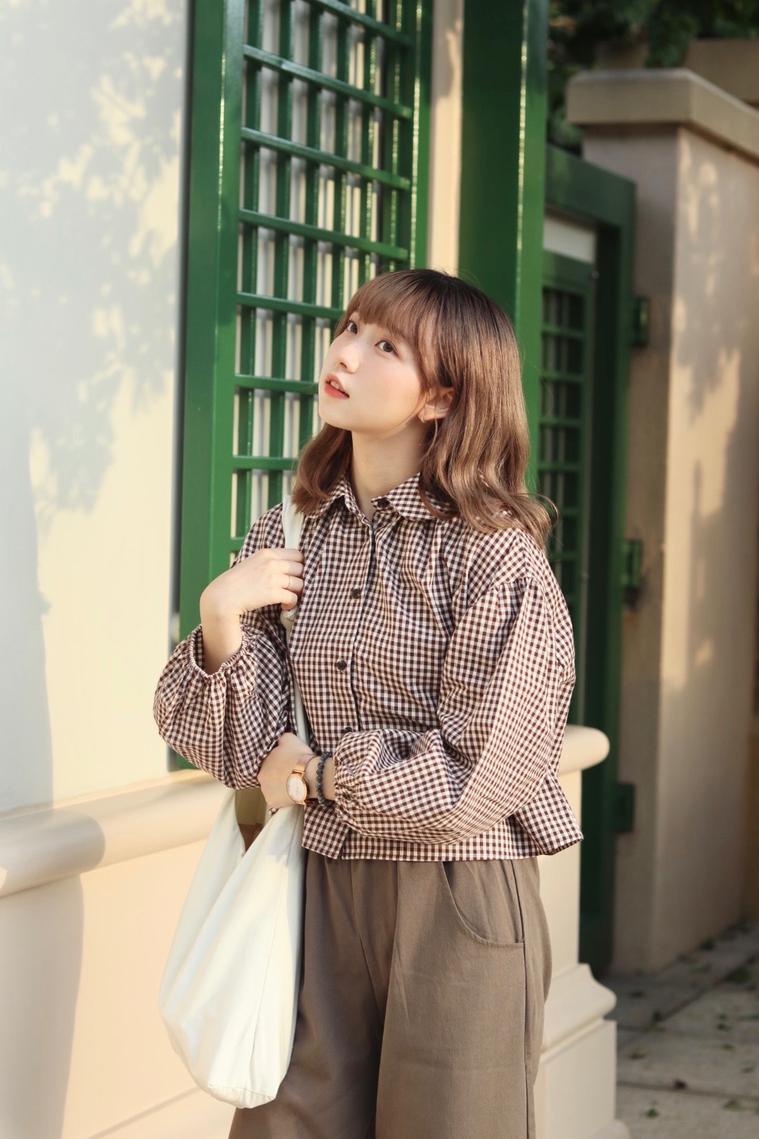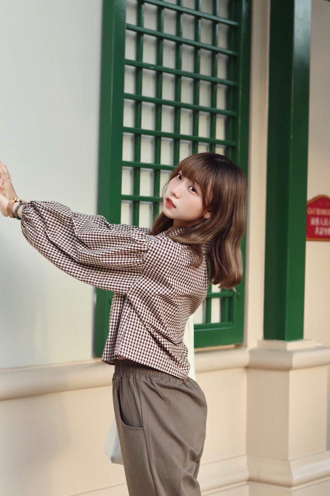 秋季必備 娃娃領格紋恤衫