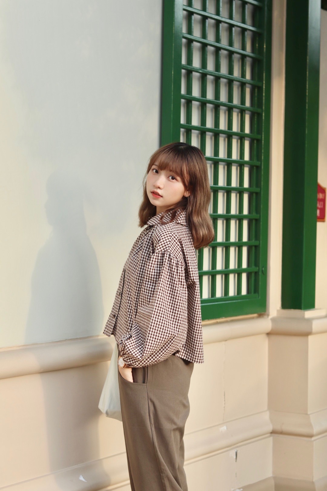 首頁 / 上身類 / 秋季必備 娃娃領格紋恤衫